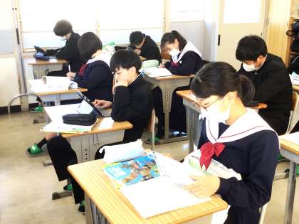 後期中間テスト2日目です。朝の時間を使って、集中してテスト勉強を行っていました。表情からも緊張感が伝わってきました。