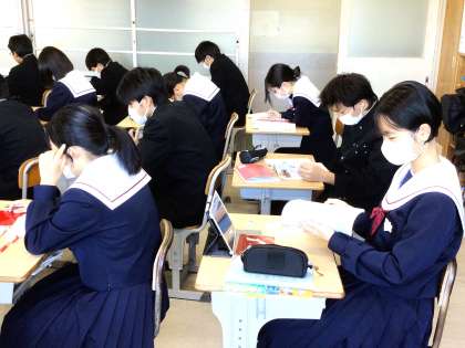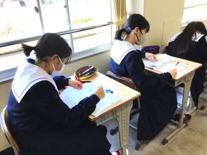 後期中間テスト2日目です。朝の時間を使って、集中してテスト勉強を行っていました。表情からも緊張感が伝わってきました。