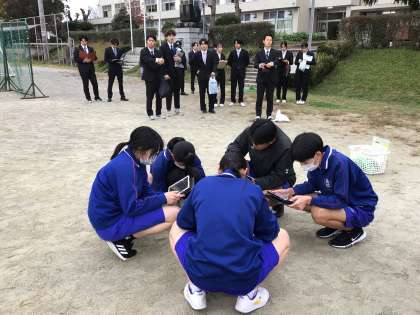 本日、中京大学の学生が21名来校し、今後教員になったとき、授業の行い方、生徒への対応を学ぶために体育と社会の授業を参観しました。