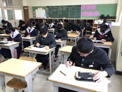 31学級は、技術・家庭科のテストの様子です。タブレットを使ってテスト問題に回答していました。