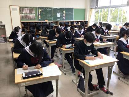 32学級は、技術・家庭科のテストの様子です。みんなとても真剣に取り組んでいました。