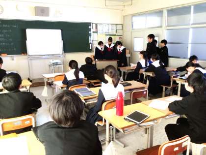 10月に行った地域貢献活動について、活動グループごとに発表していました。「最初はあまり進んで活動していなかったけど、たくさんの地域の人の『ありがとう』という言葉を聞いて、とてもうれしくなって俄然やる気が出てきました」と嬉しそうに発表している生徒の表情が印象的でした。すばらしい活動、ありがとうございます。