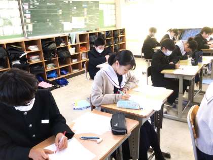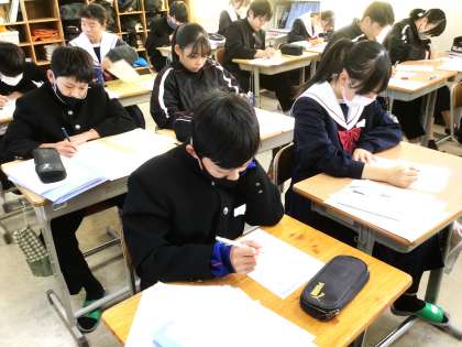 12学級は、数学の授業の様子です。既習した内容の問題を解きながら、今までの学習を復習していました。