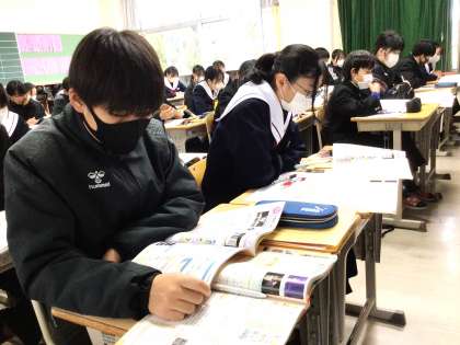 31学級は、社会の「労働の意義と労働者の権利」の授業の様子です。労働三法について、教科書や資料集の資料を見ながら理解を深めていました。