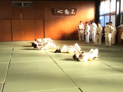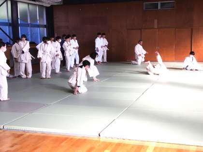 21学級は、体育の「柔道」の授業の様子です。柔道の基本運動(脇締め等)を行った後、受け身を練習していました。