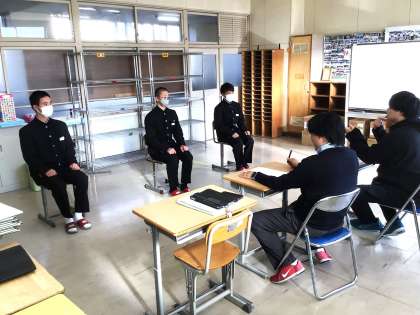 入試に向けて、面接の練習を行っていました。挨拶の行い方、言葉遣い、目線、声の大きさなどを確認していました。