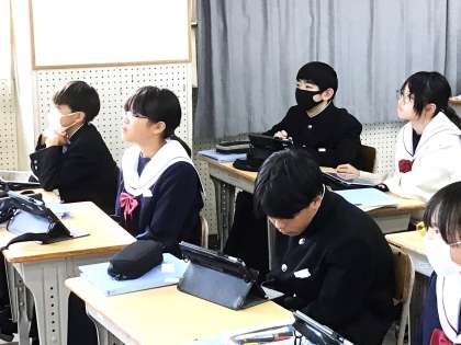 12学級は、音楽の「鑑賞」の授業の様子です。「魔王」を聴き、登場人物(魔王、父親、息子)の気持ちについて考えていました。