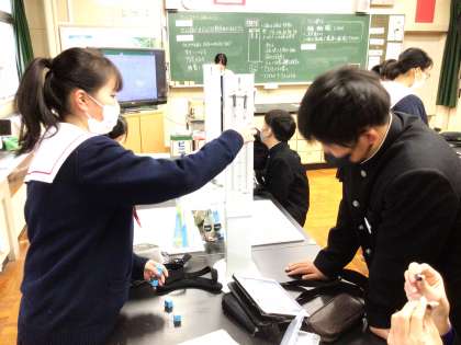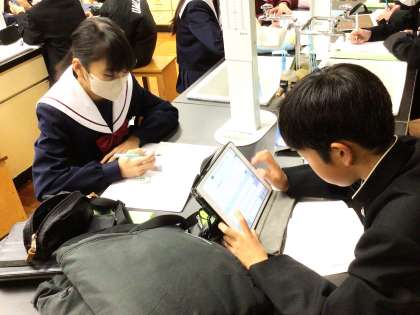 12/11(水) 授業の様子です(1年生) 1 公開日 2024/12/11 更新日 2024/12/11 お知らせ 1年生の授業の様子です。 11学級は、理科の「力のはたらき」の授業の様子です。学習課題は「力とばねにはどのような関係性があるのだろうか」です。予想を発表した後、おもりをばねにつるし、その伸びを学習用タブレットに記録し、グラフに表していました。そのグラフを見ながら、力とばねの関係について考察していました。