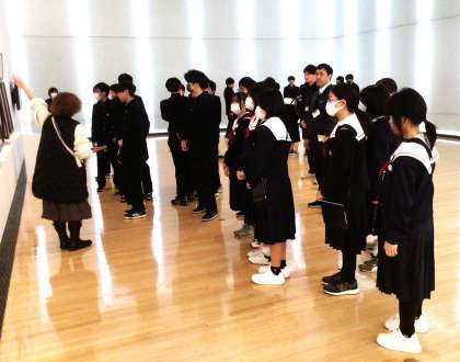 下の写真は、21学級、22学級の美術館見学の様子です。