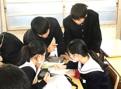 12/18(水) 授業の様子です(2年生) 1 公開日 2024/12/18 更新日 2024/12/18 お知らせ 2年生の授業の様子です。 21学級は、数学の「図形の性質と証明」の授業の様子です。「平行線と面積」について、練習問題を解いた後、教科担任や級友と解き方・考え方について話し合いながら確認していました。