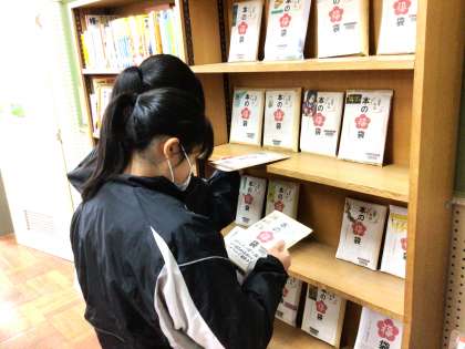本日、昼の放送で図書館司書の方から、お薦め本の紹介と図書委員が作った本の福袋の紹介がありました。昼の放課に図書室に行くと、さっそく福袋に貼ってある絵を見ながら、本を借りている生徒がいました。冬休みも、本をたくさん読み、心をさらに豊かにしてくれればと思います。
