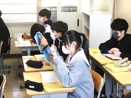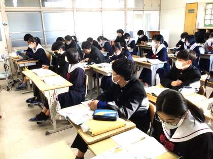 22学級は、社会の「開国後の政治と経済」の授業の様子です。桜田門外の変について、デジタル教科書の映像や教科書の資料を見ながら、理解を深めていました。