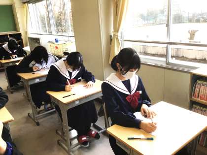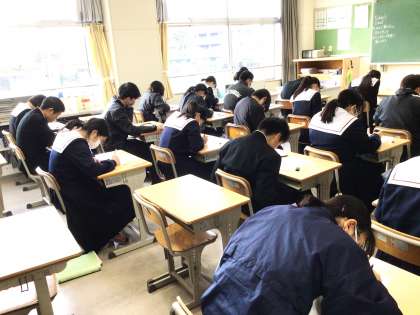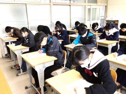 32学級は、英語の「Unit5」の単元テストの様子です。問題を解いている生徒の表情から緊張感が伝わってきました。