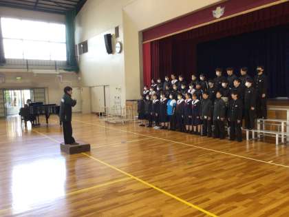 「入学説明会」に向けて、体育館で合唱練習を行っていました。前回のときより、声も大きくなり、きれいなハーモニーが体育館に響いていました。本番が楽しみです。