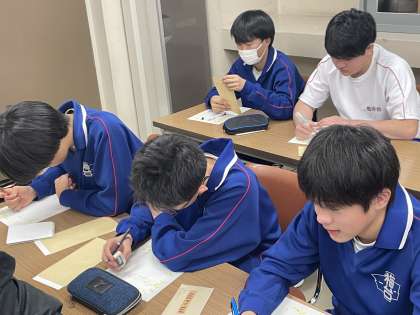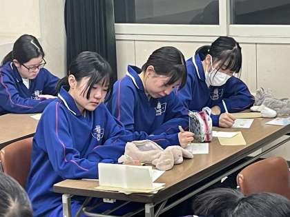 保護者からの手紙を読んだ後、保護者に手紙を書いている様子です。