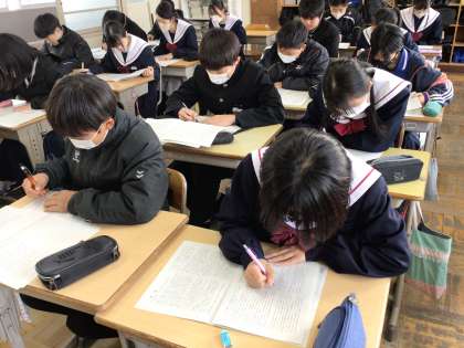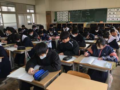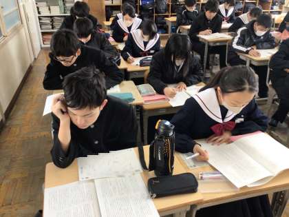 23学級は、国語の授業の様子です。来週行われる学習診断テストに向けて、対策プリントを集中して解いていました。