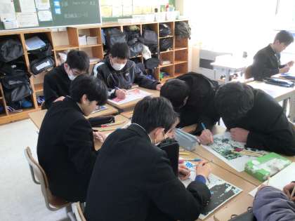 「モザイク壁画」を作成している様子です。