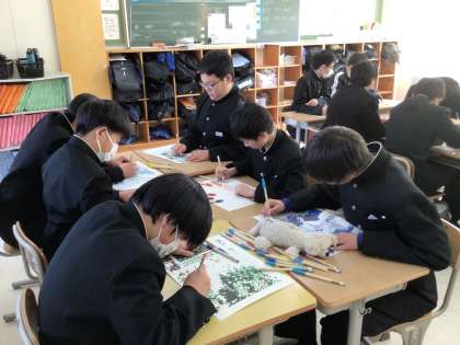 卒業を祝う会に向けて、パートごとに分かれて取り組んでします。パートは「司会進行」「モザイク壁画」「応援団」「梅台笑劇場」「思い出動画」「黒板アート」があります。本日から、1,2年生合同の練習が始まりました。「3年生に最高の思い出を」という気持ちを込めて一生懸命取り組んでいます。