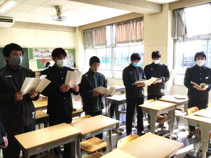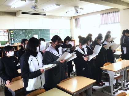 卒業式で歌う「群青(ぐんじょう)」の練習を行っている様子です。