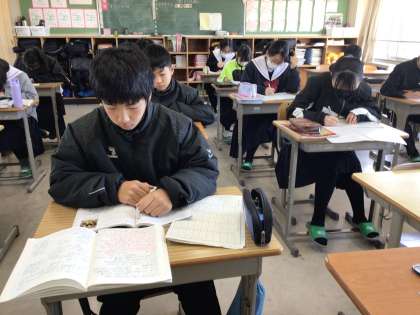2/14(金) テストに向けて集中して、朝の学習を行っています 1 公開日 2025/02/14 更新日 2025/02/14 お知らせ 学年末テスト2日目です。 朝の時間を使って、教科書や対策プリントで確認したり、学習用タブレットのキュビナの問題を解いたりと、集中してテスト勉強を行っていました。 11学級の朝の学習の様子です。