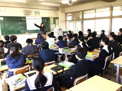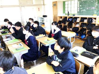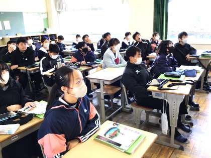23学級は、理科の「天気の変化」の授業の様子です。キュビナに出題されていた「気温の変化と空気中の水蒸気量の関係」について、教科担任の解説を集中して聞きながら理解を深めていました。