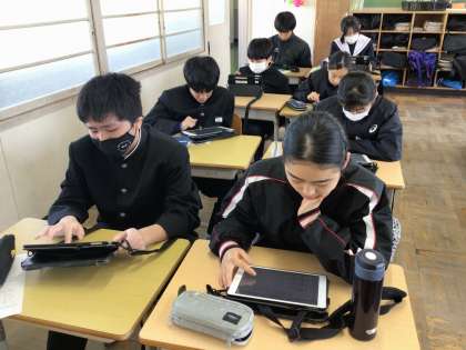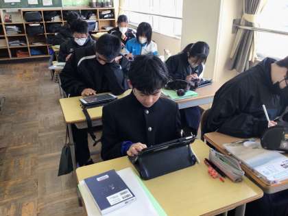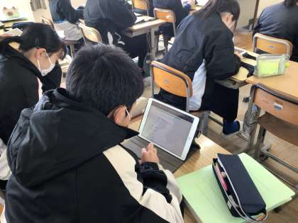 13学級は、「今までの復習をしよう」の授業の様子です。全国学力・学習状況調査の結果をもとに作成したキュビナのワークブックを個々で解き、自分の苦手を見つけるとともに、再学習にも取り組んでいました。