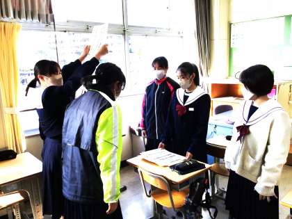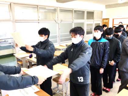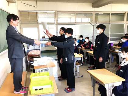 卒業証書の受け取り方の練習を行っている33学級の様子です。