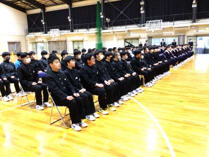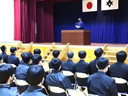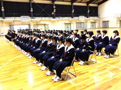 1限に、3年生が同窓会入会式を行いました。同窓会長に代表生徒が誓いの言葉を伝えるとともに、年度理事、学級世話係の紹介も行いました。