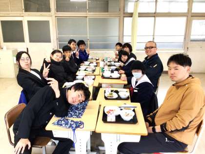 1,2,3学級の会食の様子です。卒業式が明後日となり、みんな揃って会食ができる日も少なくなってきました。会食では、たくさんの笑顔が見られました。