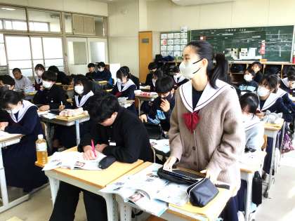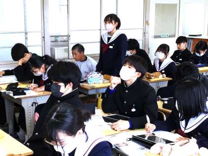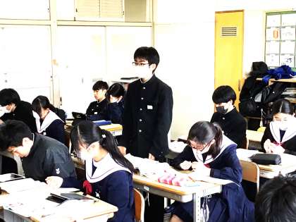 22学級は、社会の「国際協調の高まり」の授業の様子です。ベルサイユ条約について、調べてわかったことを発表していました。