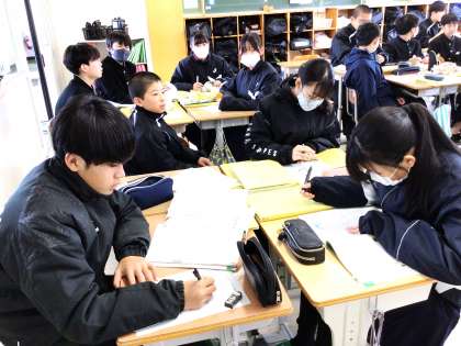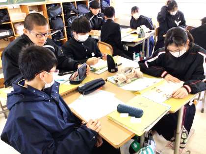 14学級は、英語の「City Lights」の授業の様子です。本文の和訳について、問題を解きながら確認していました。