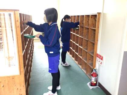 本日、新3年生が登校し、明日の入学式に向けての準備を行いました。会場内の準備や清掃、新1年生の教室の飾りつけや教科書配布など、それぞれの活動を確実に行う姿に、最上級生としての意気込みを感じました。