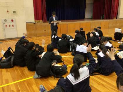 今日の3時間目に地区集会を行いました。各地区の生徒で集まり、メンバーの確認をしたり、通学路の確認をしたりした後、登下校についての指導を行いました。