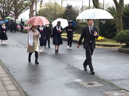 地区集会後には、あいにくの天気でしたが、地区の担当教師とともに下校し、危険個所などの確認をしました。今年一年間、安全な登下校に心がけていきましょう。