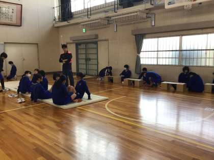 早速、体力テストの長座体前屈、握力、上体起こしの記録をとりました。