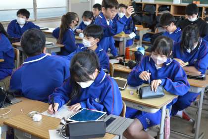 本日5時間目の学級活動の時間、1年生に学習用タブレットを配付しました。年度初めの様々な手続きが完了したため、本日から使用できる運びになりました。