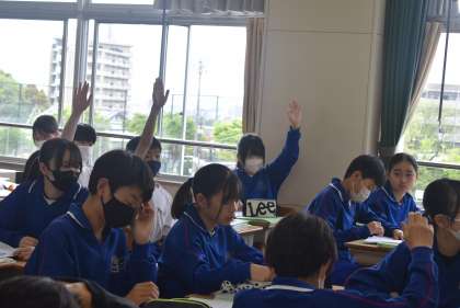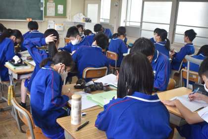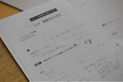 23学級は、理科の「物質の成り立ち」の授業の様子です。