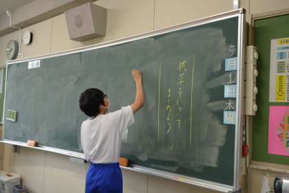 21学級は、国語の「枕草子」の授業の様子です。作者名や作品のジャンルなど、作品について知っていることについて、みんなで意見を出し合ってまとめていました。