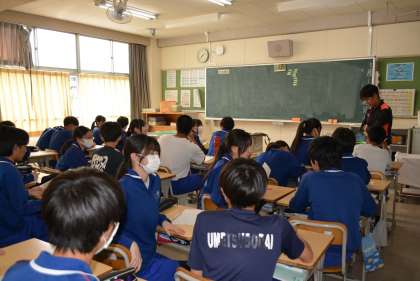 始めに、不審者が校内に侵入してきたときの対応の仕方を確認しました。次に、不審者の役を教師が行い、実際に不審者が校内に侵入したときの訓練を行いました。その後、ワークシートを使って、登下校中など不審者と遭遇したときにどうするかを考え、安全についての認識を高めました。