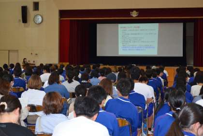 本日、修学旅行・進路説明会を体育館で行いました。ご多用の中、ご来校ありがとうございました。進路説明では、全体のスケジュールに加えて、令和5年度入試から新しくなった公立高等学校の入試制度についてや体験入学参加の必要性について話を行いました。修学旅行説明では、日程や持ち物等の概要のほか、保健関係について話を行いました。ご不明な点がありましたら、担任、学年主任、進路指導主事、養護教諭に連絡をいただければと思います。