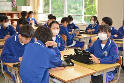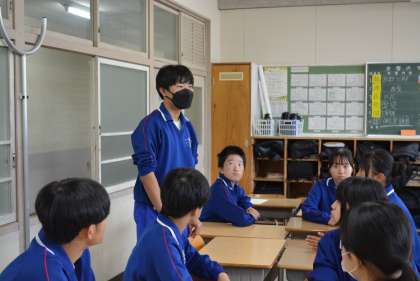 今日は対話トレーニングを行いました。「体育祭を行う意味は何か?」というテーマで班ごとに対話を行い、練り上げた意見を学級で共有していました。