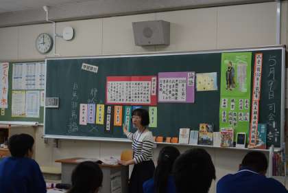 今日は、3年生の授業支援と昼の校内放送を行っていただきました。授業支援では、3年生が国語の授業で学習している論語について、様々な資料を準備して説明をしていただきました。毎週、様々な活動をしていただき、ありがとうございます。