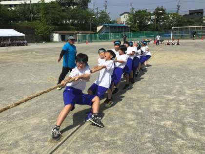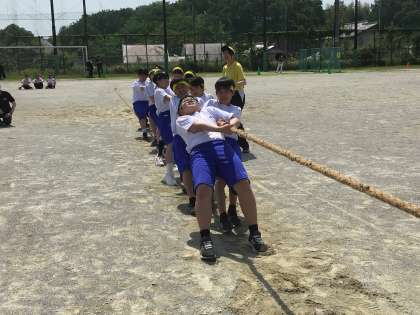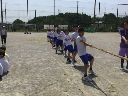 第3競技は Tug of War(綱引き)です。学年総当たりのリーグ戦で戦います。力勝負に見えますが、作戦もとても大切です。