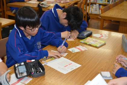 図書委員会は、6月下旬に行う図書館祭りの準備をしていました。図書館司書の先生も一緒に行っていました。