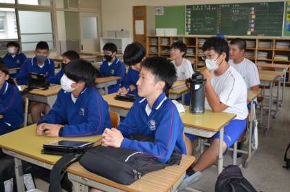 男子ソフトテニス部と野球部がミーティングをしているところです。