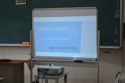 懇談会では、それぞれの部ごとに運営方針等を説明した後、来年の夏から移行される「とよた地域クラブ(仮称)」の説明を行いました。懇談会後には、それぞれの部の活動の様子を自由にご参観いただきました。
