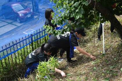 本日、梅坪台地区コミュニティ会議主催の梅の実収穫(梅狩り)と販売が行われ、ボランティア部の生徒が参加しました。地域の方々や浄水中ボランティア部の生徒とともに活動し、本校の生徒は、南側の梅の木から収穫を行いました。生徒たちは、木に実っている梅の実を見つけて棒でたたいたり、落ちてきた梅の実を拾ってバケツに集めたりするなど、梅狩りを楽しみました。