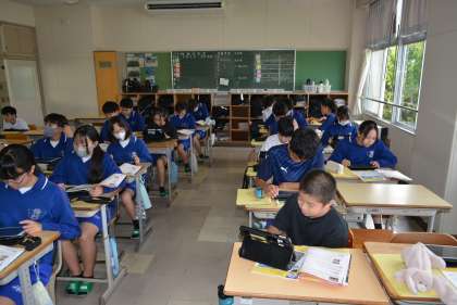 22学級は、英語の「イチオシのご当地グルメを紹介しよう」の授業です。