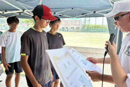 男子ソフトテニス部の表彰の様子です。
