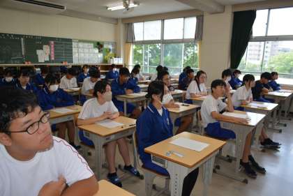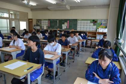 問題用紙が配られた後、開始を待つ31学級の様子です。
